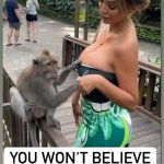 Cheeky monkey pulls down woman’s top and smacks her in face