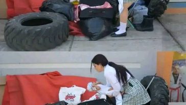 Joven mujer mete a sus dos hijas dentro del fir… Ver más.
