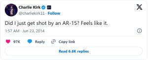 After the assassination of Charlie Kirk in Utah, an old tweet of his has resurfaced and unsettled many people. In June 2014, Kirk wrote on Twitter: “Did I just get shot by an AR-15? Feels like it.”