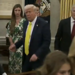 Al darse cuenta de que algo serio estaba ocurriendo, el presidente Trump interrumpió su discurso y dejó el podio para ayudar. “Espero que esté bien”, se le oyó decir.